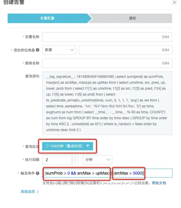 具体的告警设置如下: