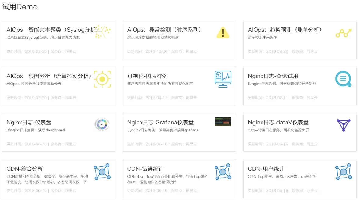 这里是日志服务的各种功能的演示 日志服务整体介绍,各种Demo