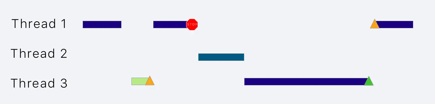 它的缺点是它的时间消耗大,它必须经常分配和改变上下文。如果你的 App 不需要任何高计算能力,这就无关紧要了。但是如果遇到帧丢失等问题,你可能就需要考虑别的方案了(例如 Mutex)。