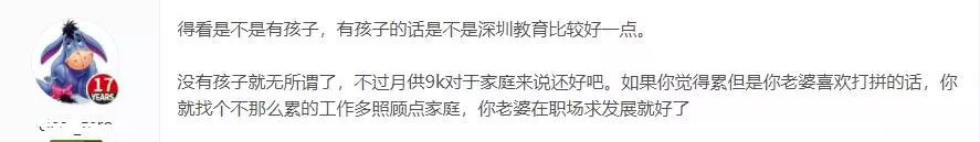 而如果实在没有足够强的信念要扎根深圳,那么就要做好家人的思想准备,回到小一点的城市发展。在有了一定资产的情况下,退居二线城市,压力不会那么大,生活质量也会变得更好。