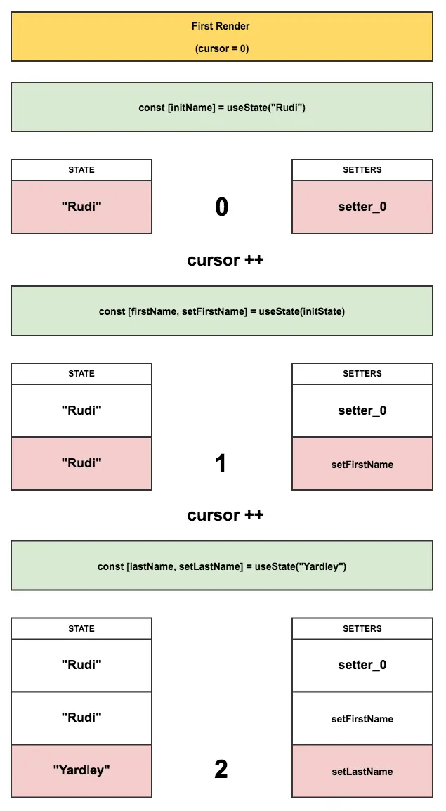 const [firstName, setFirstName] = useState("Rudi"); // cursor: 0
