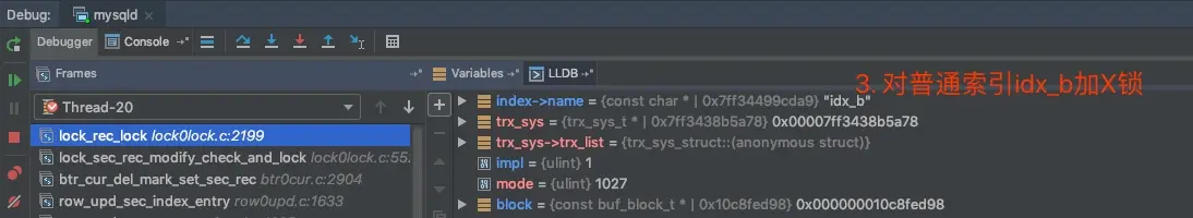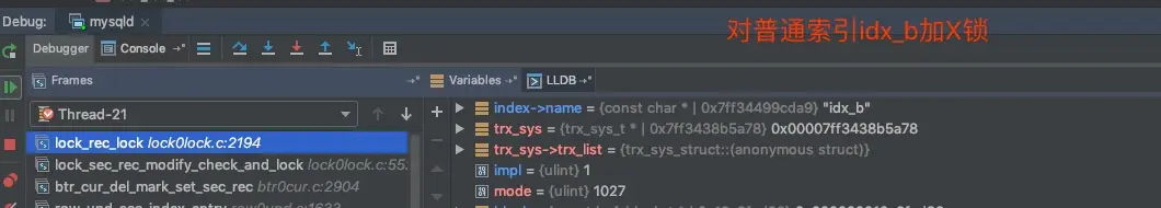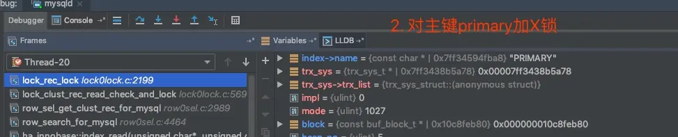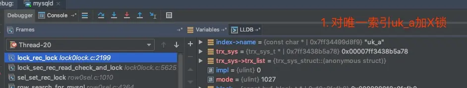 我们先用之前debug的方式来看一下,这里两条语句分别加了哪些锁