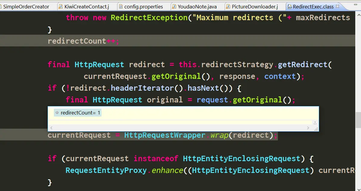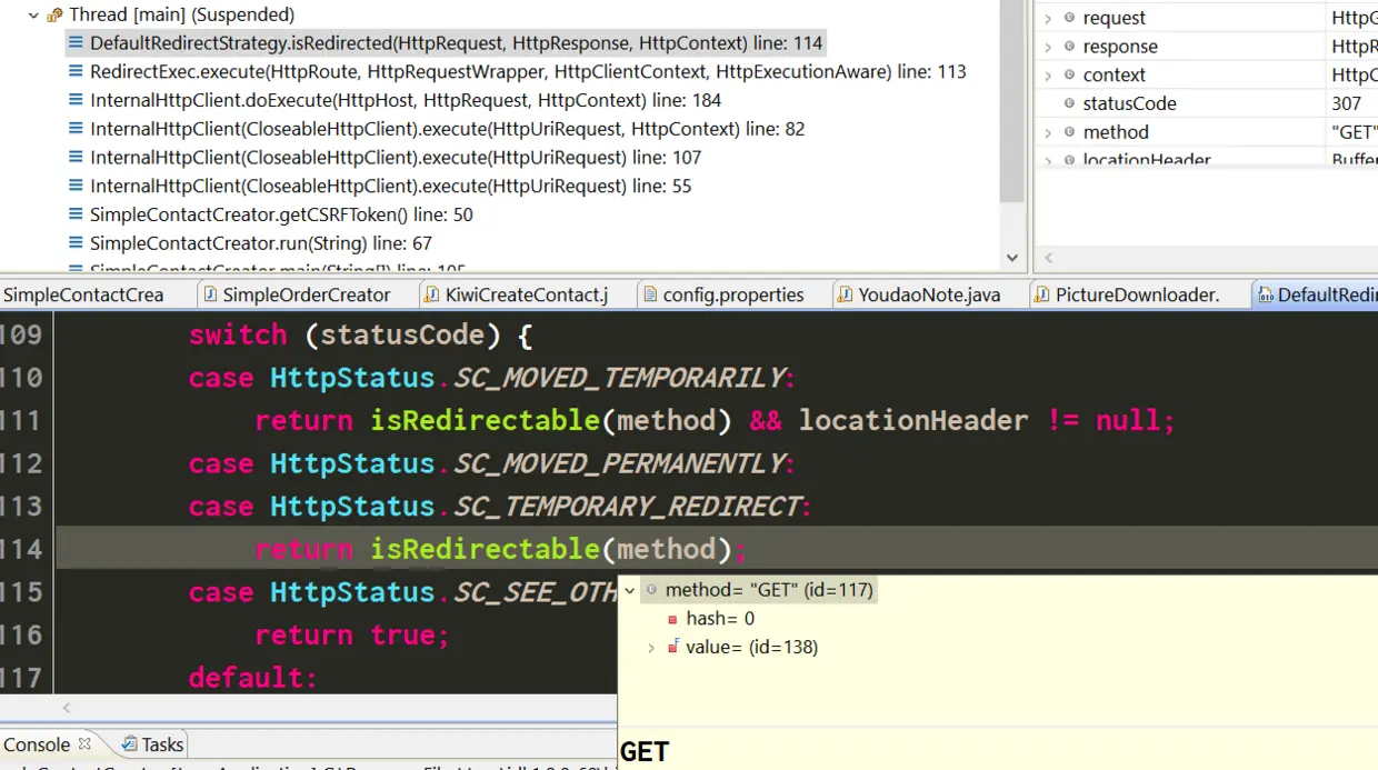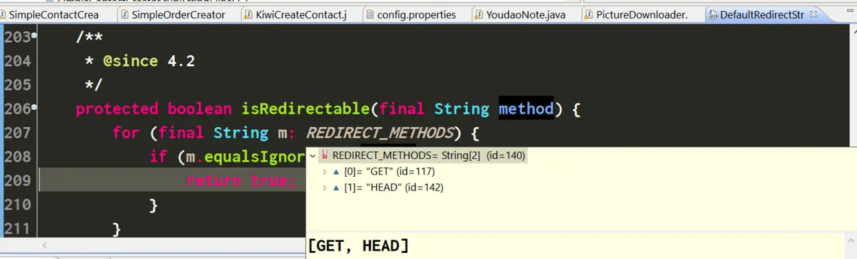 我的后台服务器返回的307,落到了分支HttpStatus.SC_TEMPORARY_REDIRECT处: