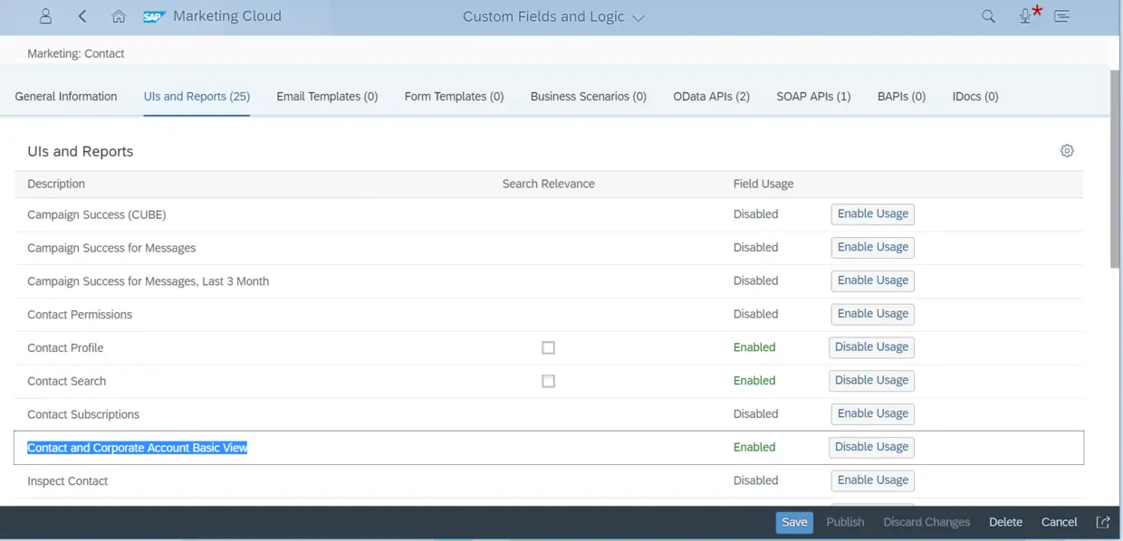 接下来需要为特定的UI enable这个字段的显示。在标签页UIs and Reports里,在对应的UI记录后点击按钮"Enable Usage":