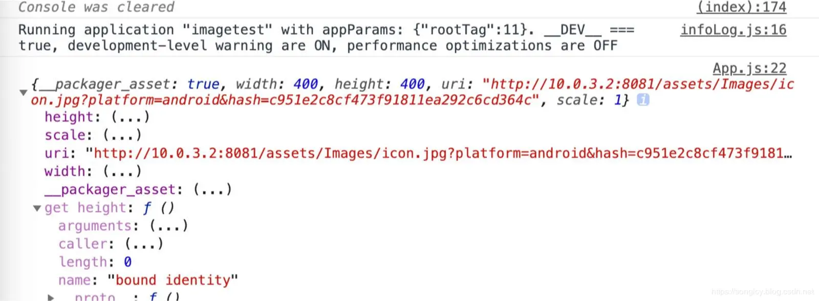 可以看到,resolveAssetSource 方法不仅返回了图片到宽高,还有Uri及scale属性值。 上图中,Uri的值为 http:// 开头的链接,这就涉及到RN对于Uri的定义规则: