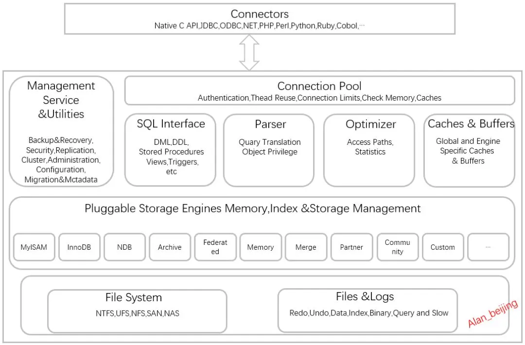 对于MySQL来说,虽然经历了多个版本迭代,但每次的迭代,都是基于MySQL基架的。