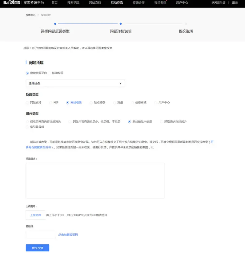 搜索引擎并不是一成不变的,一成不变的话那就变成工具了,所以搜索引擎是随时都在变,都在更新的,因此可能在您新网站上线时,搜索引擎正在调整,导致一时没有收录您的网站,这种情况是很难遇到,如果遇到的话,就可以静静等待搜索引擎调整好在做提交,或者你可以去反馈下,提醒他们收录您的网站。反馈地点如图: