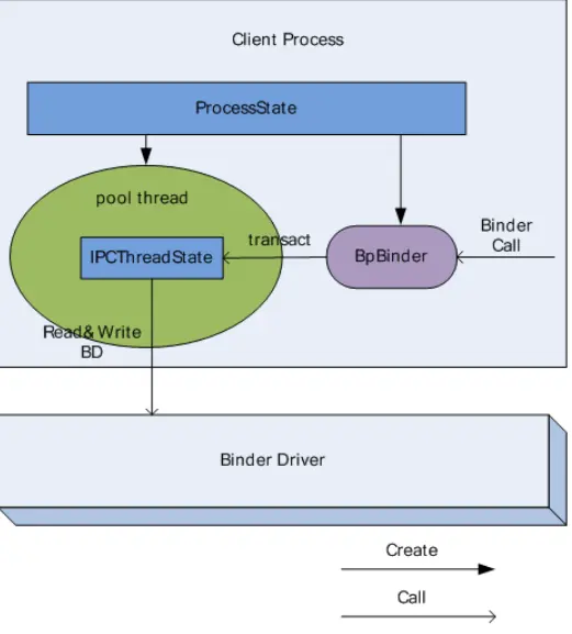 Binder 在 framework 层进行了封装,通过 JNI 技术调用 Native(C/C++)层的 Binder 架构。