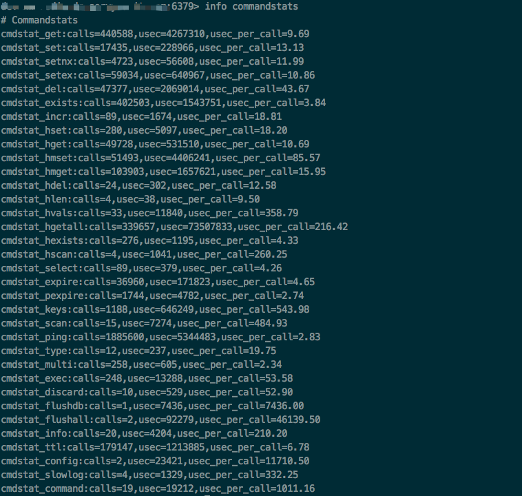 cmdstat_XXX: calls=XXX,usec=XXX,usec_per_call=XXX