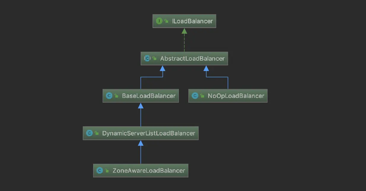 ILoadBalancer 的实现 依赖关系示意图如下: