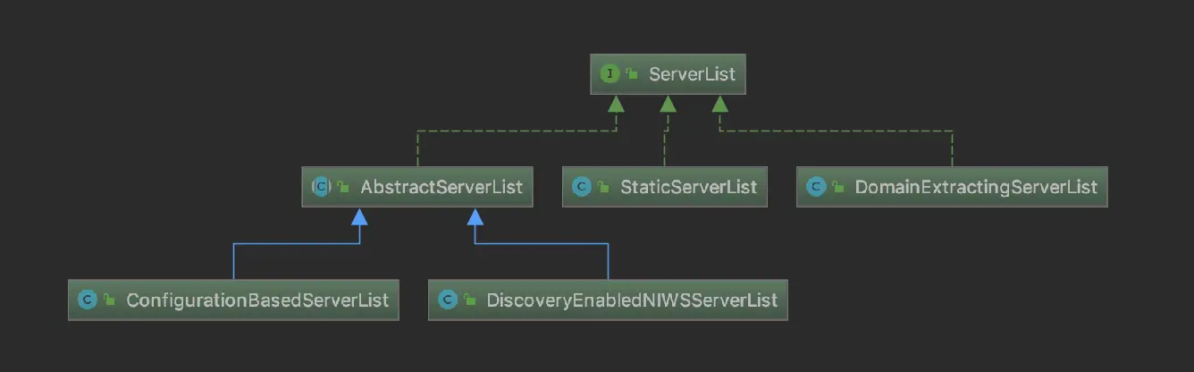 ServerList 的实现 依赖关系示意图如下: