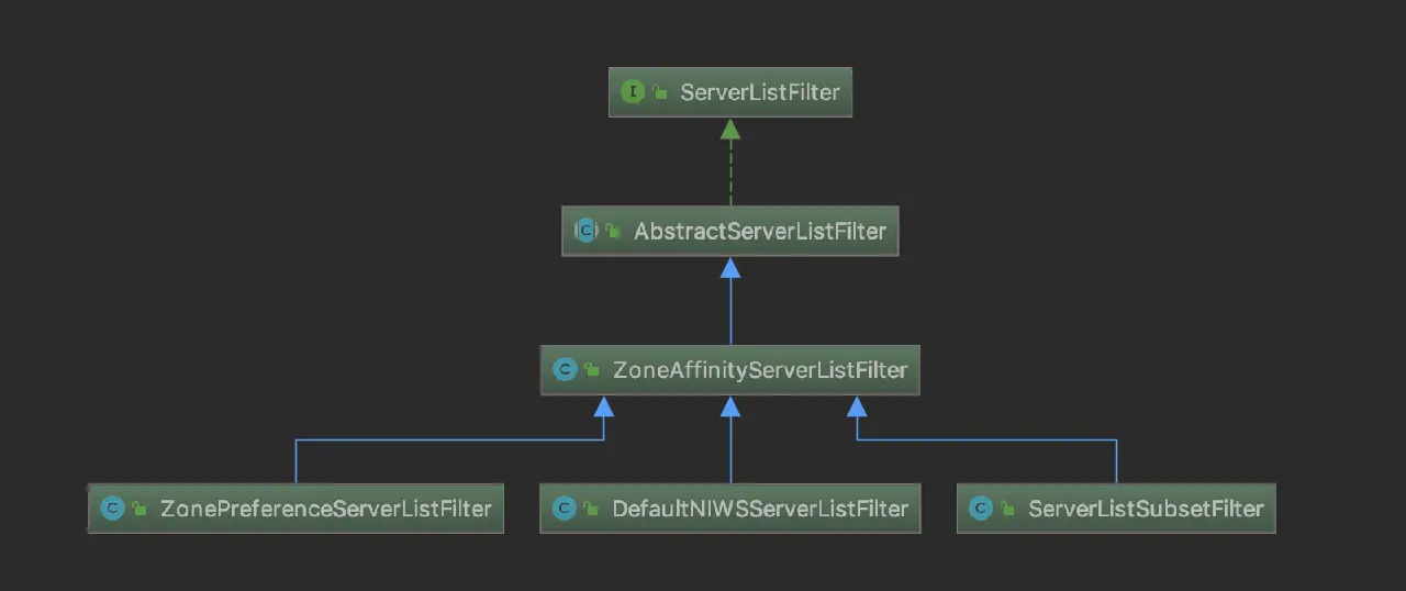 ServerListFilter 的实现 依赖关系示意图如下:
