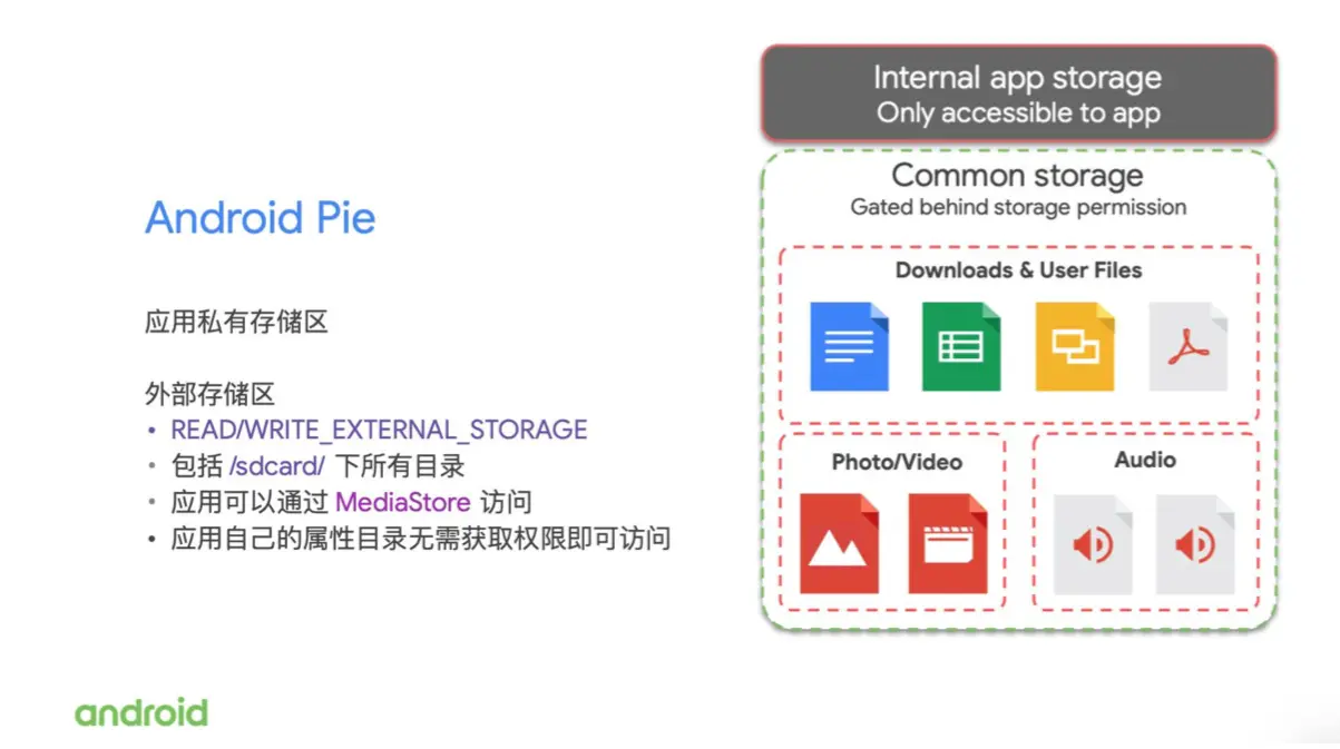 坚持这三点原则,也就意味着我们正在对 Android 平台的存储方式进行一个非常深刻的改变。我们知道应用可能需要一些稍长的时间来适应这些变化,但我们也认为从长远来看,它对 Android 平台会更有益处,能够让 Android 成为一个更好的用户平台,也能为用户提供更好的隐私保护。