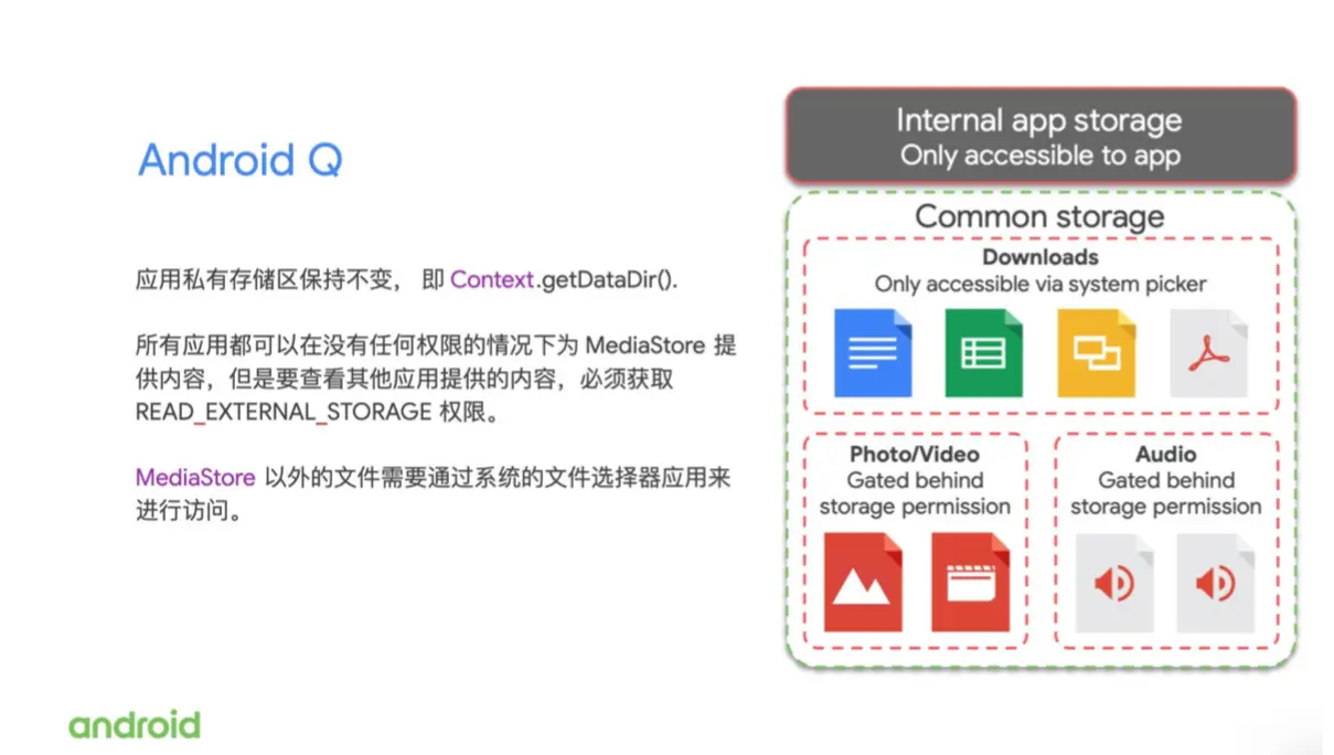 接下来,我们看一下在 Android Q 上存储空间的访问是什么样的?