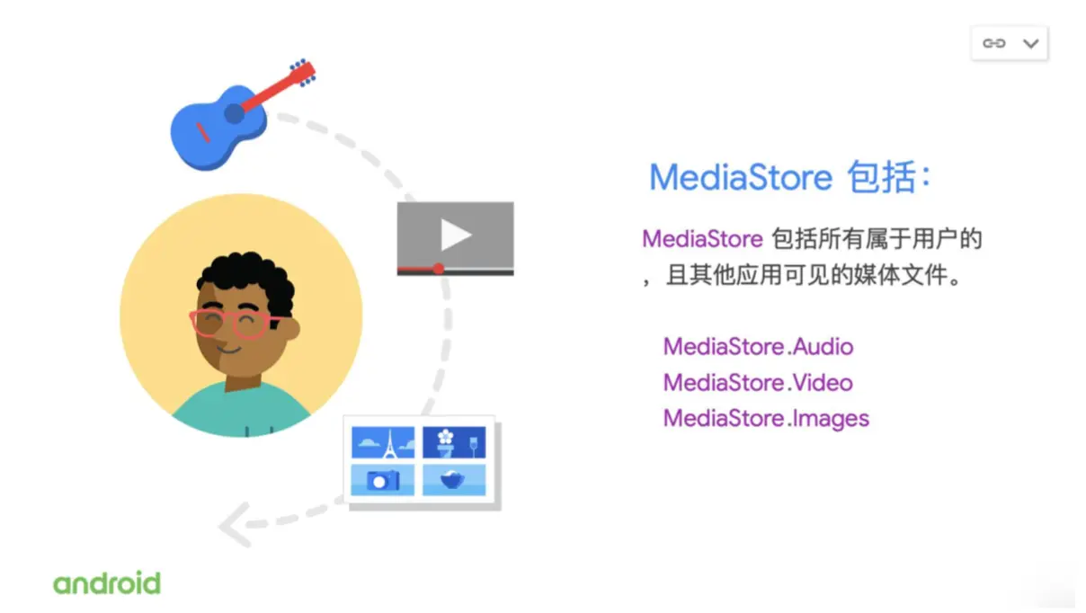 Mediastore 是一个属于用户的公用媒体文件集合,它从 Android 发布的第一个版本就已经存在。