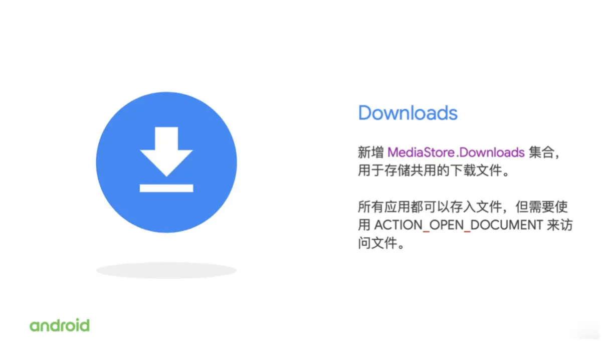 Android Q上新增了一个 Download 集合,用于存储所有不适合被放到的 Mediastore(视频、音频、图片)集合里面的文件。