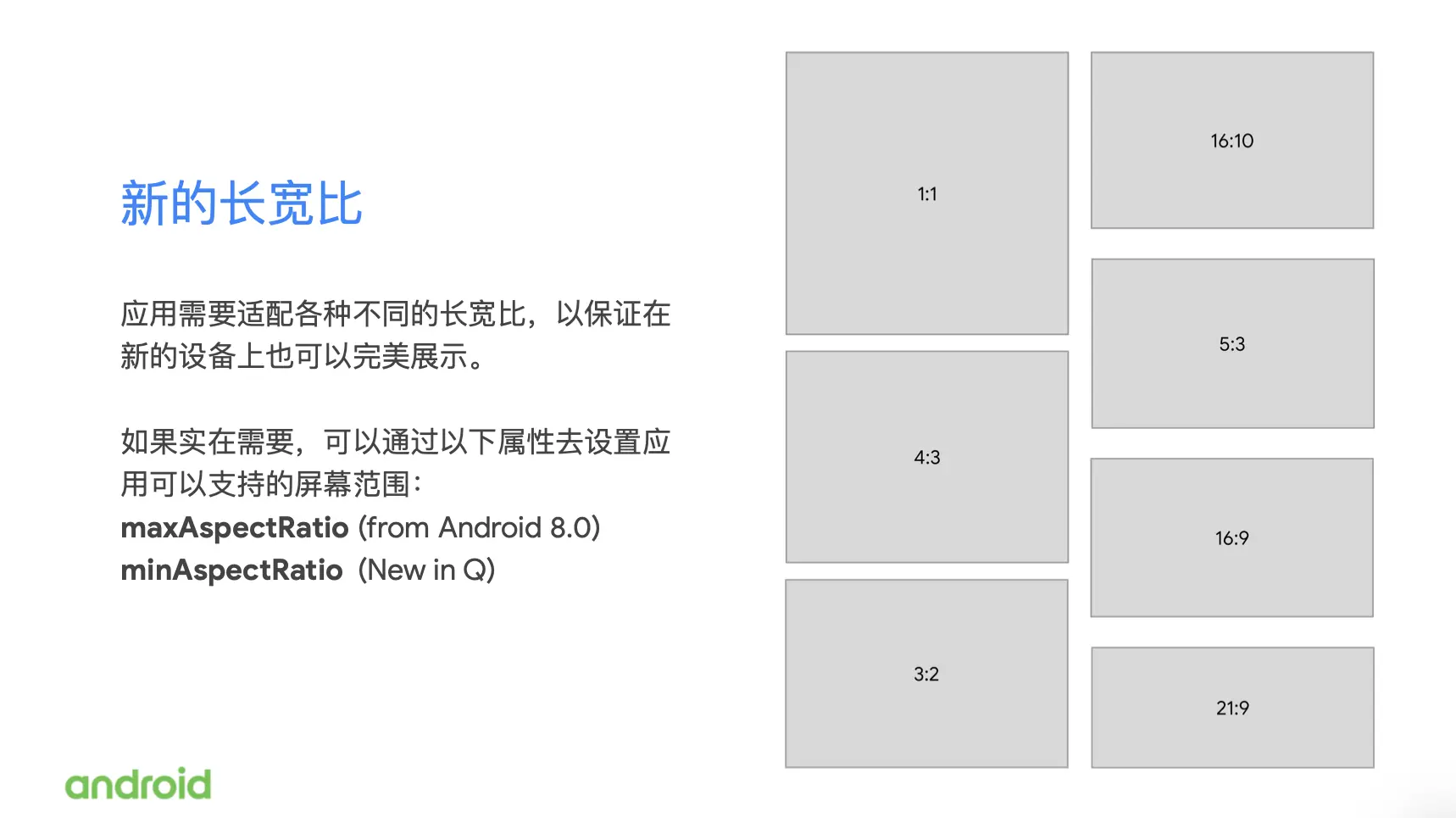 也可以使用我们在AndroidQ上新加入的minAspectRatio去设置你所能支持的最小长宽比。