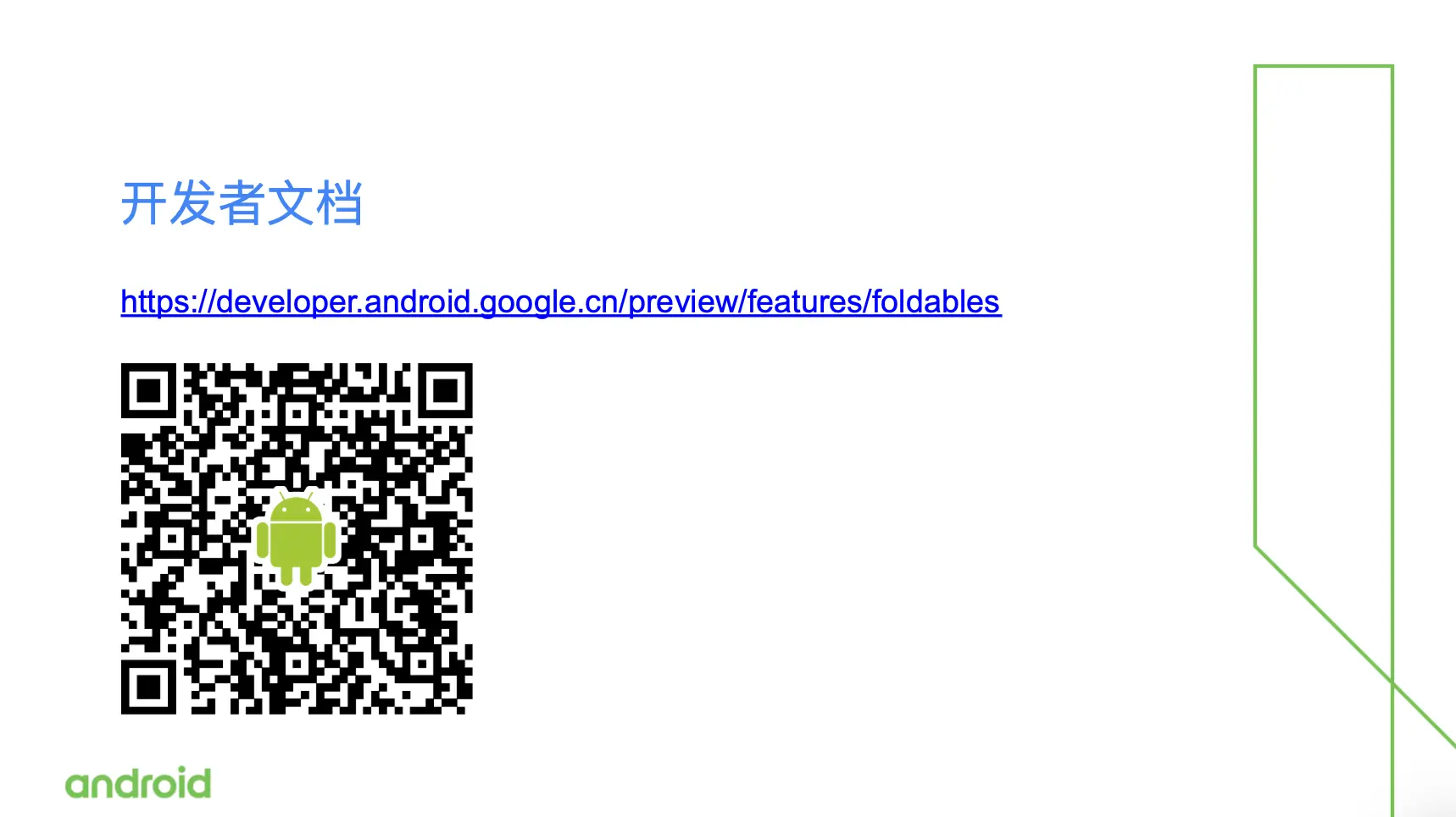 我们还在开发者网站上有一个非常详细的教程来跟大家介绍,如何去适配这些折叠屏手机设备。大家可以通过扫描现在屏幕上的二维码去阅读教程,那么我们也希望大家能够尽快的实现你的应用与这些折叠屏手机的适配工作。