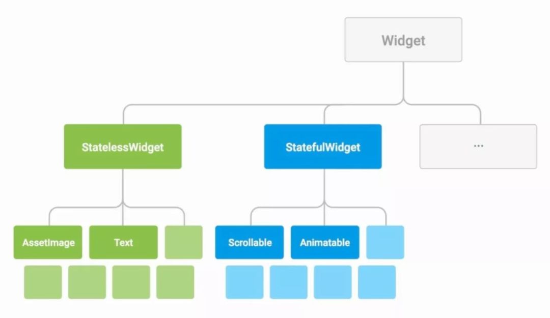 在Flutter应用中,和界面显示及用户交互的对象都是由Widget构成的,例如视图、动画、手势等。Widget分为StatelessWidget和StatefulWidget两种,分别是无状态和有状态的Widget。