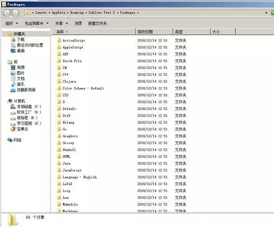 2、点击第一个选项“Browse Packages…”,然后系统会自动定位到Sublime的安装包目录。