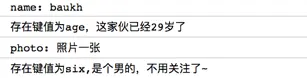 console.log('存在键值为six,是个男的,不用关注了~');