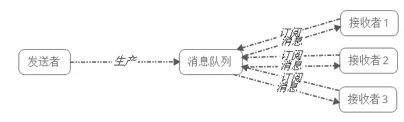 消息发送者生产消息发送到queue中,然后消息接收者从queue中取出并且消费消息。消息被消费以后,queue中不再有存储,所以消息接收者不可能消费到已经被消费的消息。