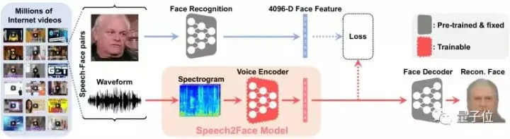 而且在这个过程中,不需要人类标记视频,由模型自我监督学习。这就是文章中所说的Speech2Face模型。