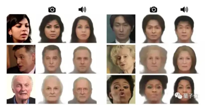 左边一列是真实的照片,右边一列是神经网络根据声音推断出来的长相。