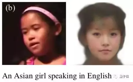 模型有时候也能正确预测结果,比如让一个亚洲小女孩说英文,虽然恢复出的图像和本人有很大差距,但仍可以看出黄种人的面部特征。