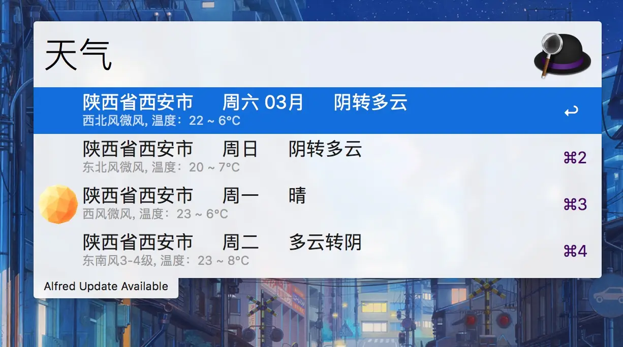 不过我用的最多的,是它提供的workflow功能,它可以自定义指令来触发相应的事件或动作。可以实现什么呢?基本我搜单词,查天气,计算器,搜百度,搜知乎,搜github,google,定闹钟,查文档,快速打开各类网站都是通过Alfred来完成。