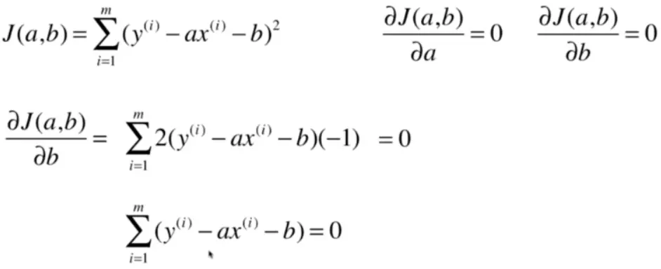 求a,b的过程,就是对a,b分别求导,令极值为0,求方程组的过程。