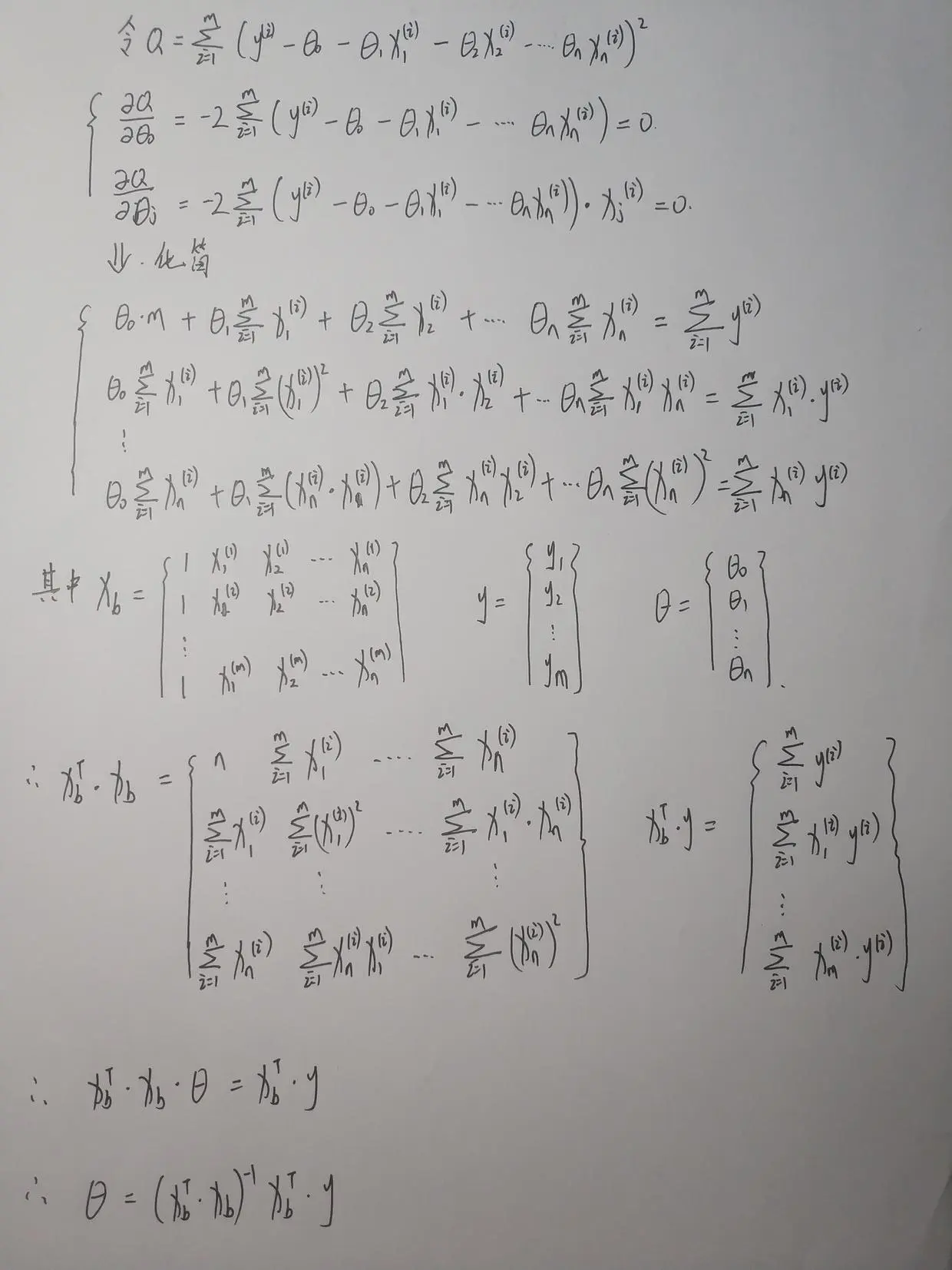 那么如何求呢,和简单线性回归相似,对所有参数进行求导,令极值=0。