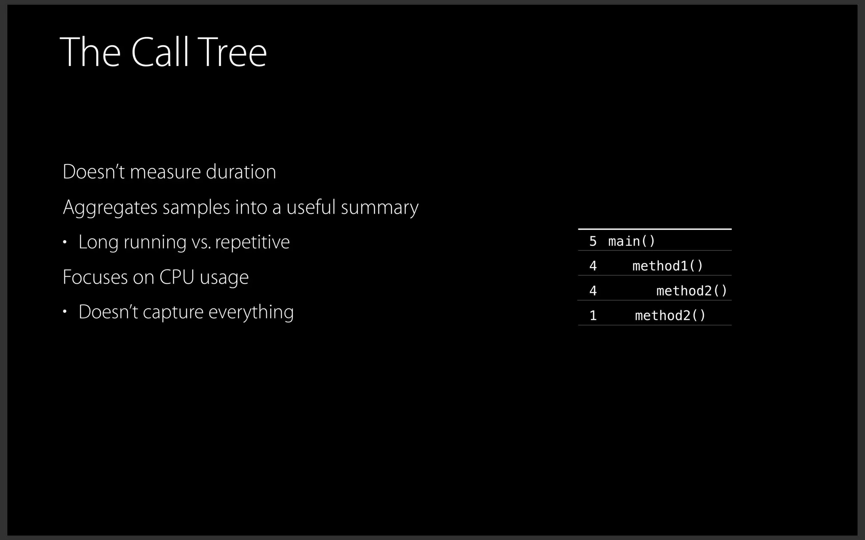 网上已经有很多相关 Instruments 的介绍,今天从另外的角度再罩一个轮子。主要内容来自 WWDC&Using Time Profiler in Instruments,接下来仅简单的介绍一下开发中忽略的点(即使是你看过了 WWDC, 可能也会忽略的)。