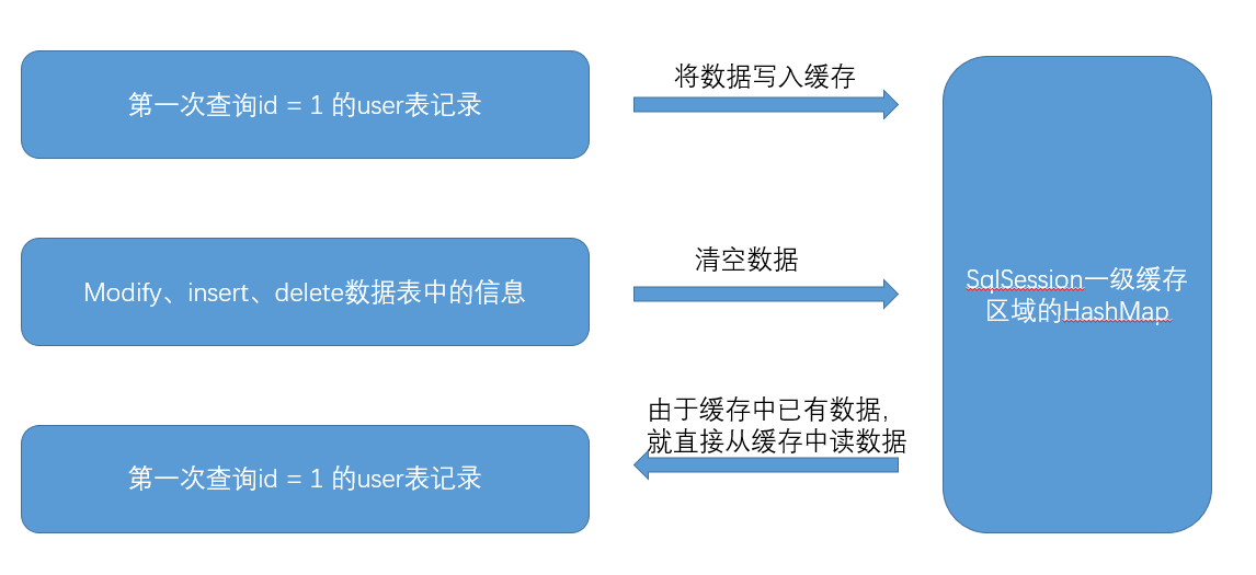 1、一级缓存是在SqlSession 层面进行缓存的。即在同一个SqlSession 中,多次调用同一个Mapper中的同一个statment并且是同一个参数的话,只会进行一次数据库查询,然后把数据缓存到缓冲中,如果以后要查询相同的Sql和参数,就直接先从缓存中取出数据,不会直接去查数据库。 但是不同的SqlSession对象,因为不用的SqlSession都是相互隔离的,所以相同的Mapper、参数和方法,他还是会再次发送到SQL到数据库去执行,返回结果。(本质上是在SqlSession作用域下面的HashMap本地缓存,当 SqlSession 刷新或 关闭之后,该Session中的所有 缓存数据就将清空。)可以用下面的这张图来表示一级缓存