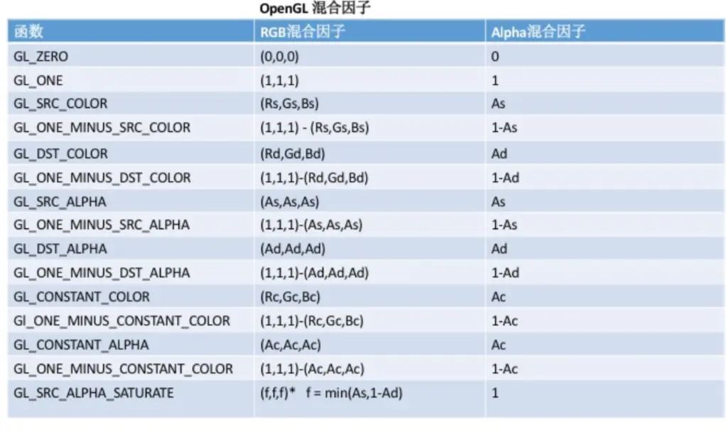 glBlendFunc(GL_SRC_ALPHA, GL_ONE_MINUS_SRC_ALPHA);