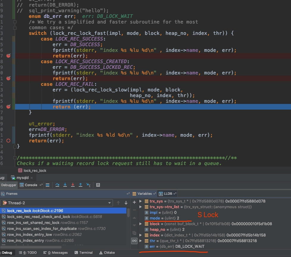 fprintf(stderr, "row_ins_set_shared_rec_lock %s %lu %d\n" , index->name, type, err);