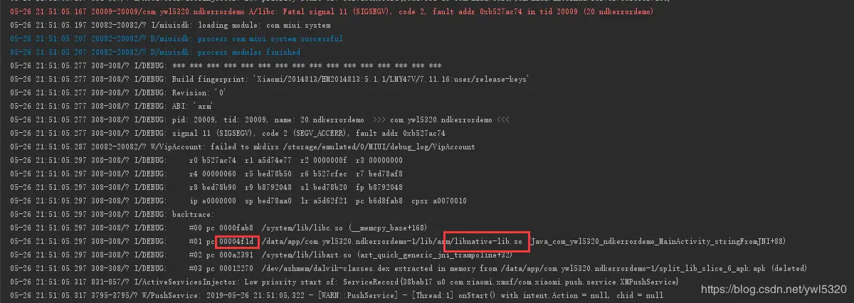 这里我们就找到了“libnative-lib.so”的错误地址是“00004f1d”,这样就定位到了C++代码出错的地址了。