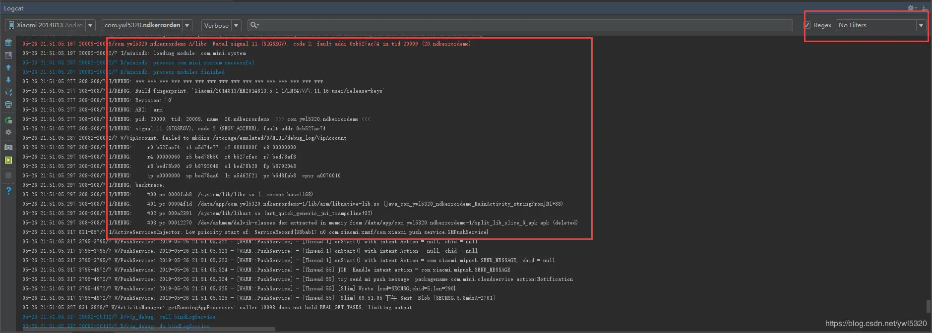 四、以上就是一种我们常用的定位NDK出错的方式,简单而快速。不过实际情况比这个更复杂多,有可能根本没有明显的错误地址给我们,那时我们就需要结合日志、流程、注释等手段综合起来定位我们的错误,这也是一个孰能生巧的过程。