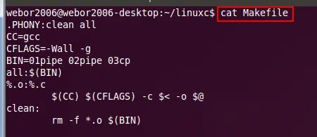 while ((n=read(infd, buf, 1024))>0)//将管道中的数据写入到新创建的Mkaefile2文件以变向实现了文件的拷贝操作