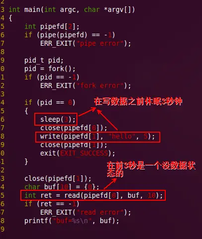 read(pipefd[0], buf, 10);//从管道的读端读入数据