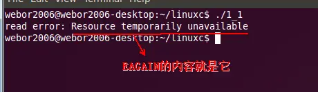 可见,在非阻塞模式下,read时会错误提示。