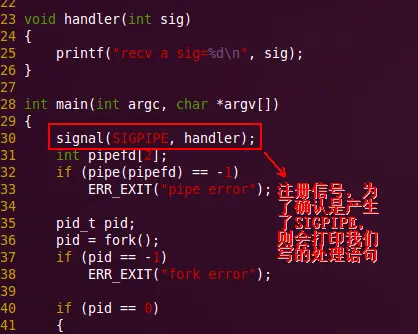 int ret = write(pipefd[1], "hello", 5);//看下是否会产生SIGPIPE,而默认它的行为就是终止当前进程