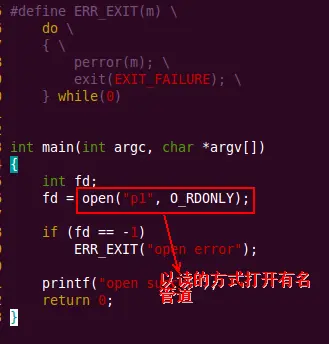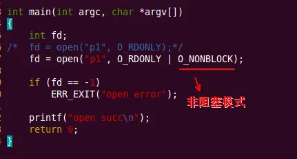 infd = open("tp", O_RDONLY);//以只读的方式打开本地有名管道