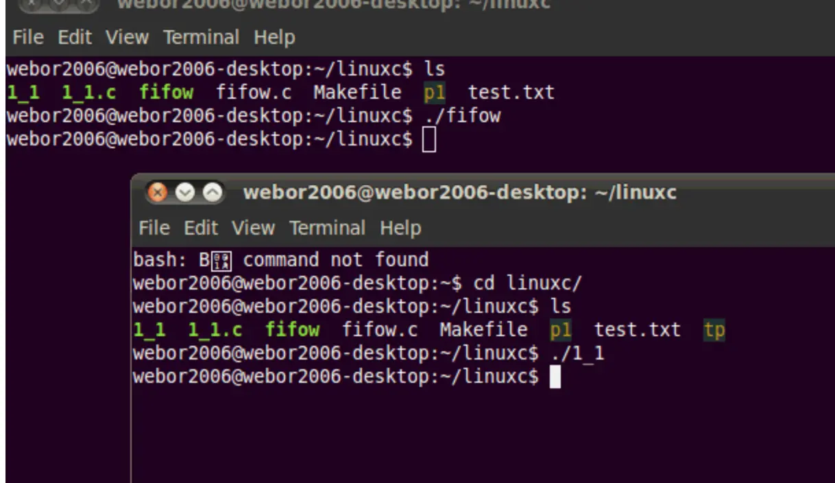 mkfifo("tp", 0644);//创建一个管道文件