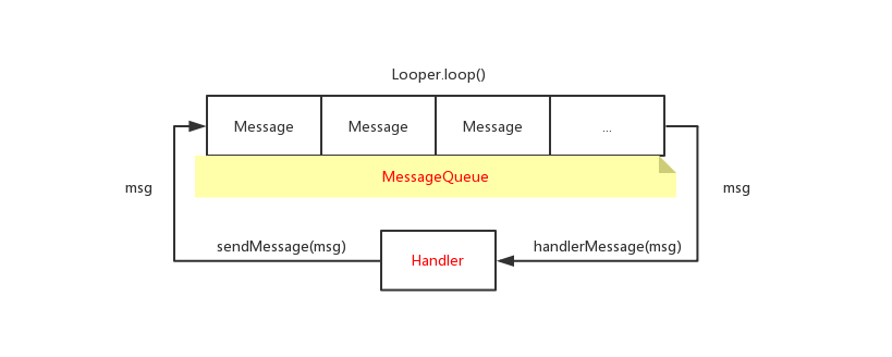 创建 Handler 的对象,利用该对象获取 Message 对象,然后通过 sendMessage(msg) 发送消息,最后在 handlerMessage(msg) 方法里面处理收到的消息。
