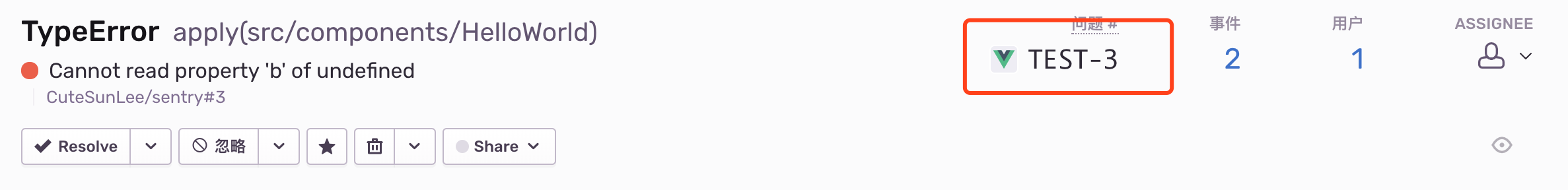 打开 github ,在 sentry 这个仓库下,发现多了一个issue,就是刚才我们创建的。
