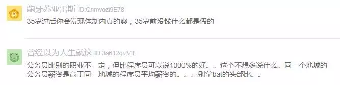 有网友表示:等你过了35岁,你就会发现体制内真的爽,什么35岁之前没钱都是假的,别的行业不好说,但是比做程序员的好十倍!!
