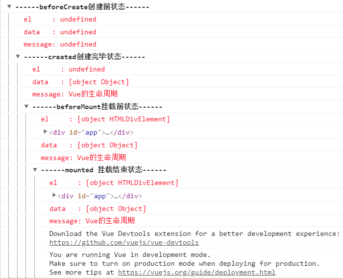 在了解vue生命周期的时候可以先运行以下代码,观察congsole.log出来的结果