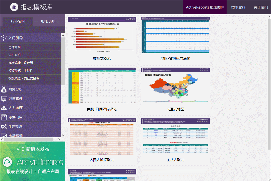 报表模板库中罗列了多种可交互分析的报表模板,具备多样化的数据交互分析能力,您不仅能够清楚地查看业务发展趋势,还能直接操作报表数据,进行更深入、更透彻的数据分析,如: