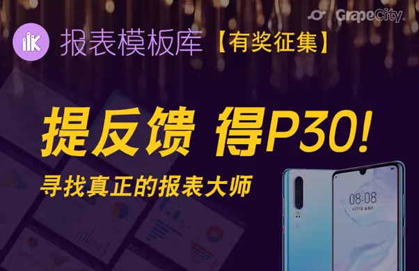 现在,我们也诚邀您对模板库提出反馈,共同打磨各行业经典报表,与我们共建模板库,寻找真正的报表大师,赢取华为P30。了解活动详情,请点击此处。